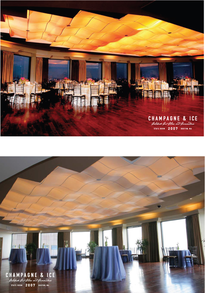To ensure that the logo captures the feeling of the venue, we applied it to the corner of two photographs of the space itself. As seen here, the type and construct match up very well to the space. This helps create a cohesive identity — from initial look/feel to experiencing the venue, and ultimately, the event.