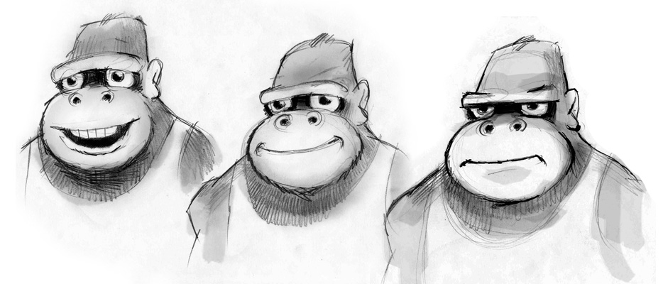 These sketches demonstrate the range of expressions that can be achieved with this character; from exuberant to stern.