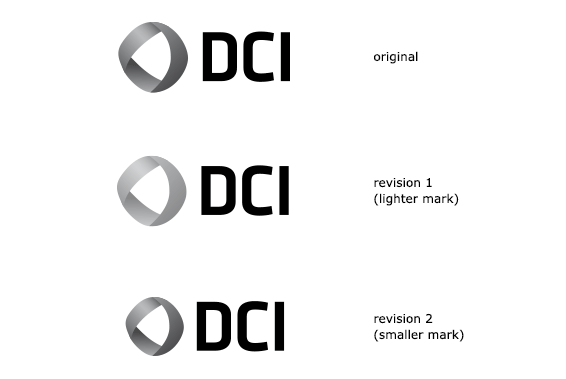 The mark in this arrangement is based on a mobius strip, suggesting continuous movement and travel, as well as the multifaceted nature of DCI's projects. It's paired with contemporary typography that echoes its shapes.