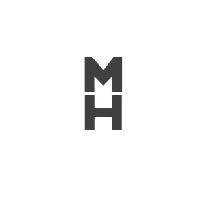 with a contemporary sans serif typeface that reinforces the implied letterforms of 'M' and 'H' without distracting from the mark.