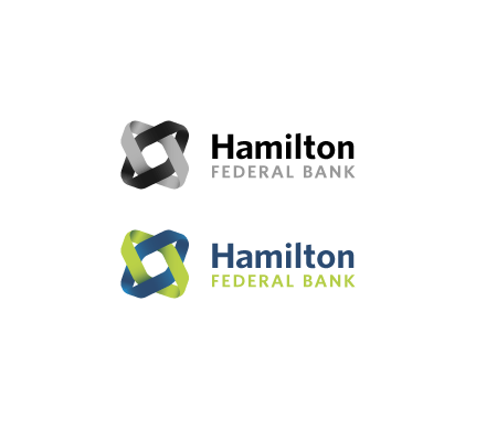 This typeface is modern with personality. It was used to help embody Hamilton Federal Bank's forward-thinking growth strategy while remaining true to the company's roots in its people and its customers. The mark is woven and geometric in nature; a technique that was used to portray the bank as an organization looking ahead, bringing a blended service offering to the table for its customers with each service working in unison to help meet the customer's needs.