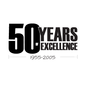 The date range and length lines convey the fact that Harms' excellence has extended across five decades. The guide lines precisely lay out the strikingly bold "50 Years of Excellence," emphpasizing the quality and superiority of the company's work.