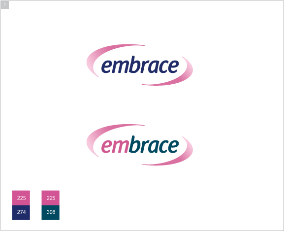 The highly-modified type is clean and precise, but approachable. The marks imply an embrace, cradling the type