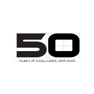 The guide lines and handwriting font commonly used in engineering drawings anchor the bold number 50. The Harms typeface was modified to create the "50," which compliments current branding. A tighter, to-the-point, tagline of "50 Years of Excellence" and the date range were used to convey the company's enduring committment to high standards. |