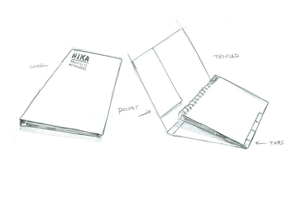 Spiral bound and attached to a heavier cover-weight stock, this proposal will feature a double-sided cover with three panels.