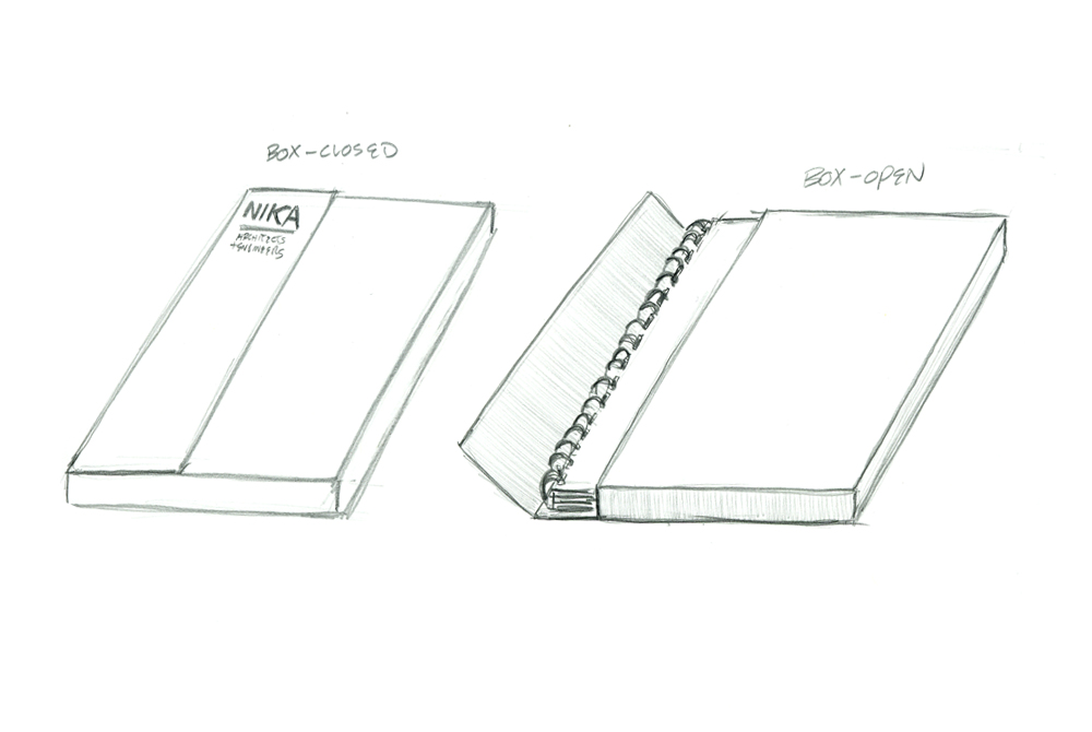 This option features a custom printed package, or box that a spiral bound proposal document would slide