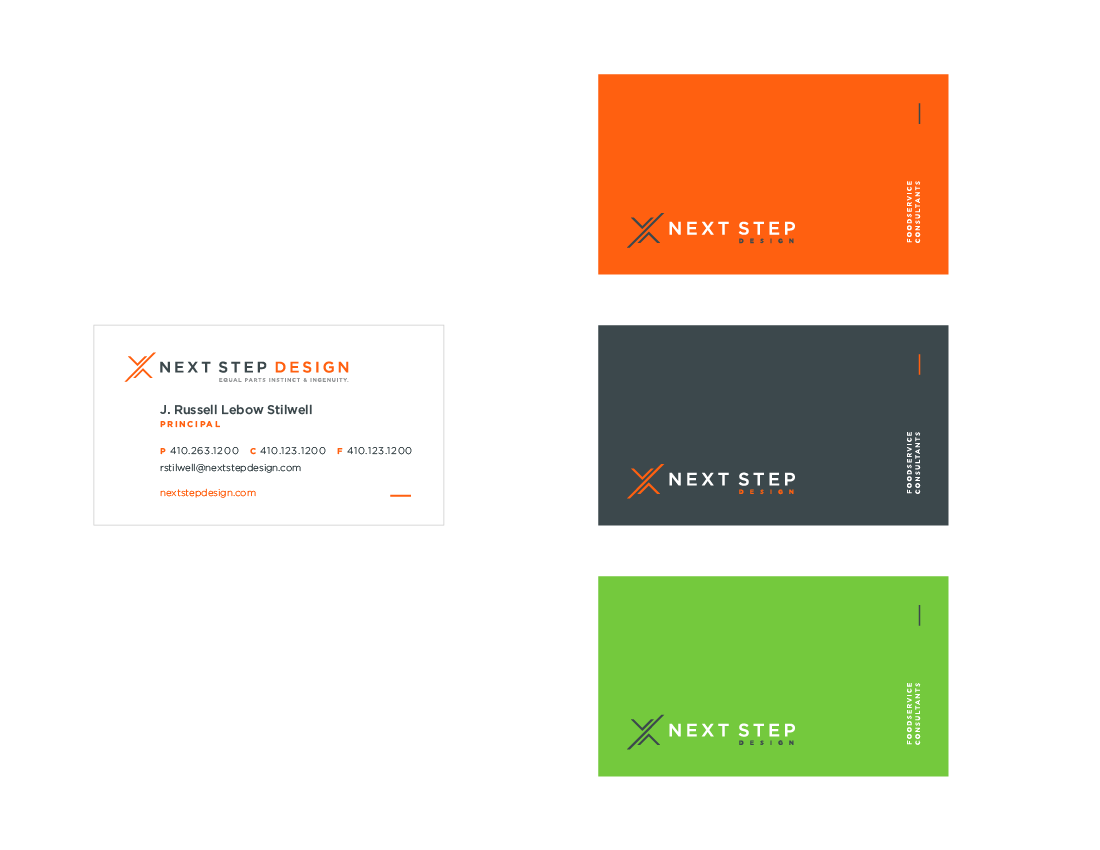 Option 1 Clean and straigh-foward. The focus is keeping the card clean and balanced, letting the logospeak for itself, with minimal marks to hold content in place. Next