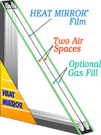 Heat Mirror is a thin film that when suspended between two sheets of