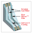 Originally developed by scientists at M.I.T., Heat Mirror is a thin film that when suspended between two sheets of glass, can make a 1” thick window just as insulating as the 6” wall around it. Not to be confused with low E glass, Heat Mirror creates two airspaces in an insulated window, and is optimized for maximum energy savings in nine different climates. In fact, windows built with Heat Mirror are up to 150% more insulating than windows built with standard low E glass.